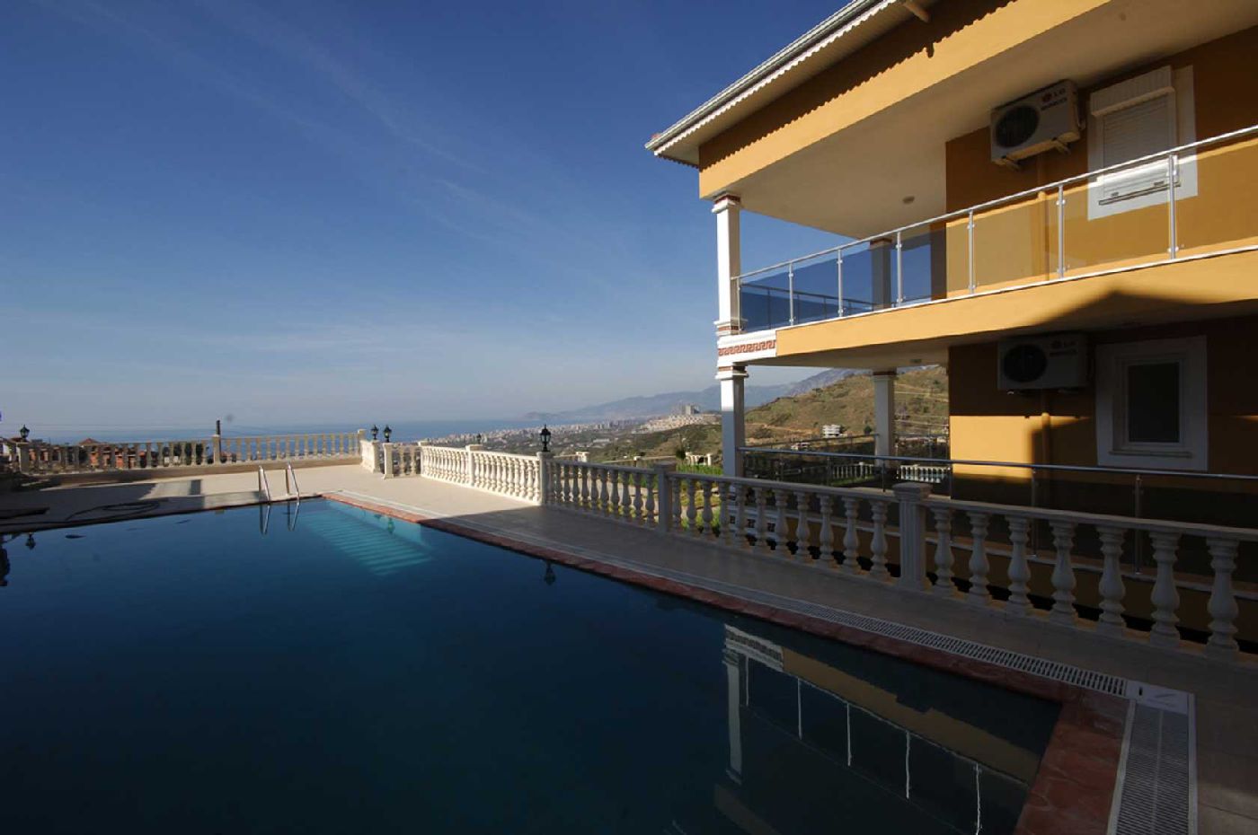Luxueux duplex à louer, splendidement situé sur les hauteurs dans un écrin de verdure à 4 km de la plage, avec jardin, piscine privée, terrasse et solarium. Le tout dans un confort achevé. Vue superbe sur la mer, Alanya et sa citadelle.